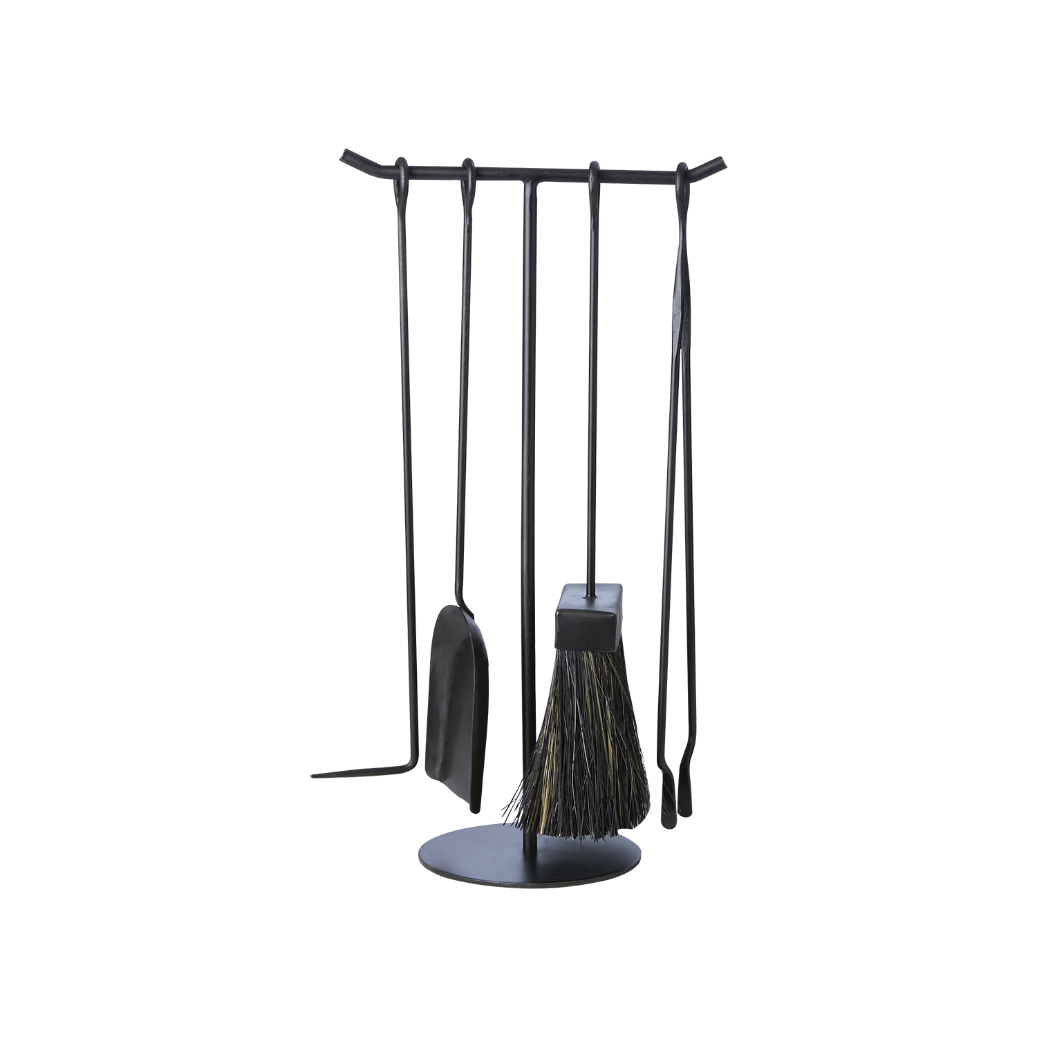 Ett snyggt och enkelt eldställ som gör sig snygg bredvid kaminen.