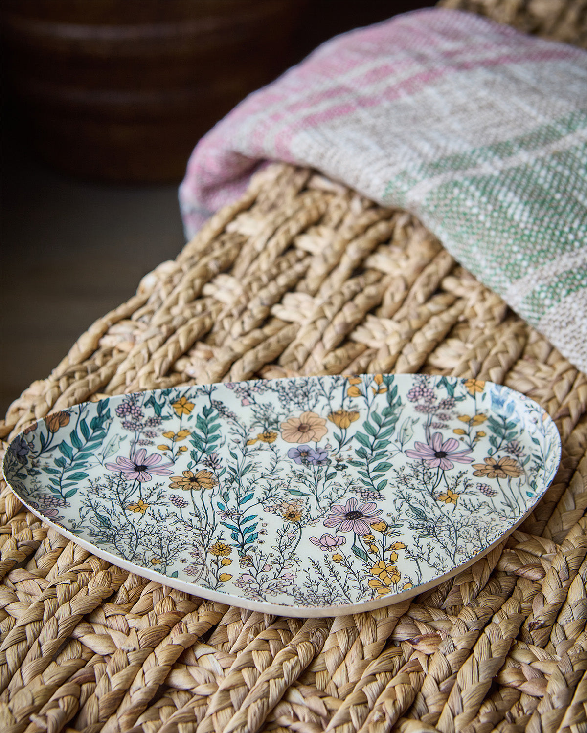 Ett mindre fat i härliga Eldorado-serien med blommönster. Perfekt för vårens och sommarens alla stunder – från långa frukostar i solen till ljumma kvällar på altanen.