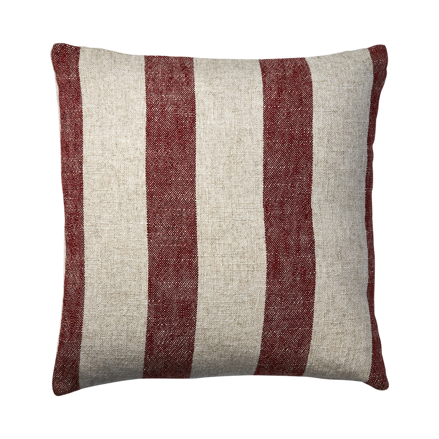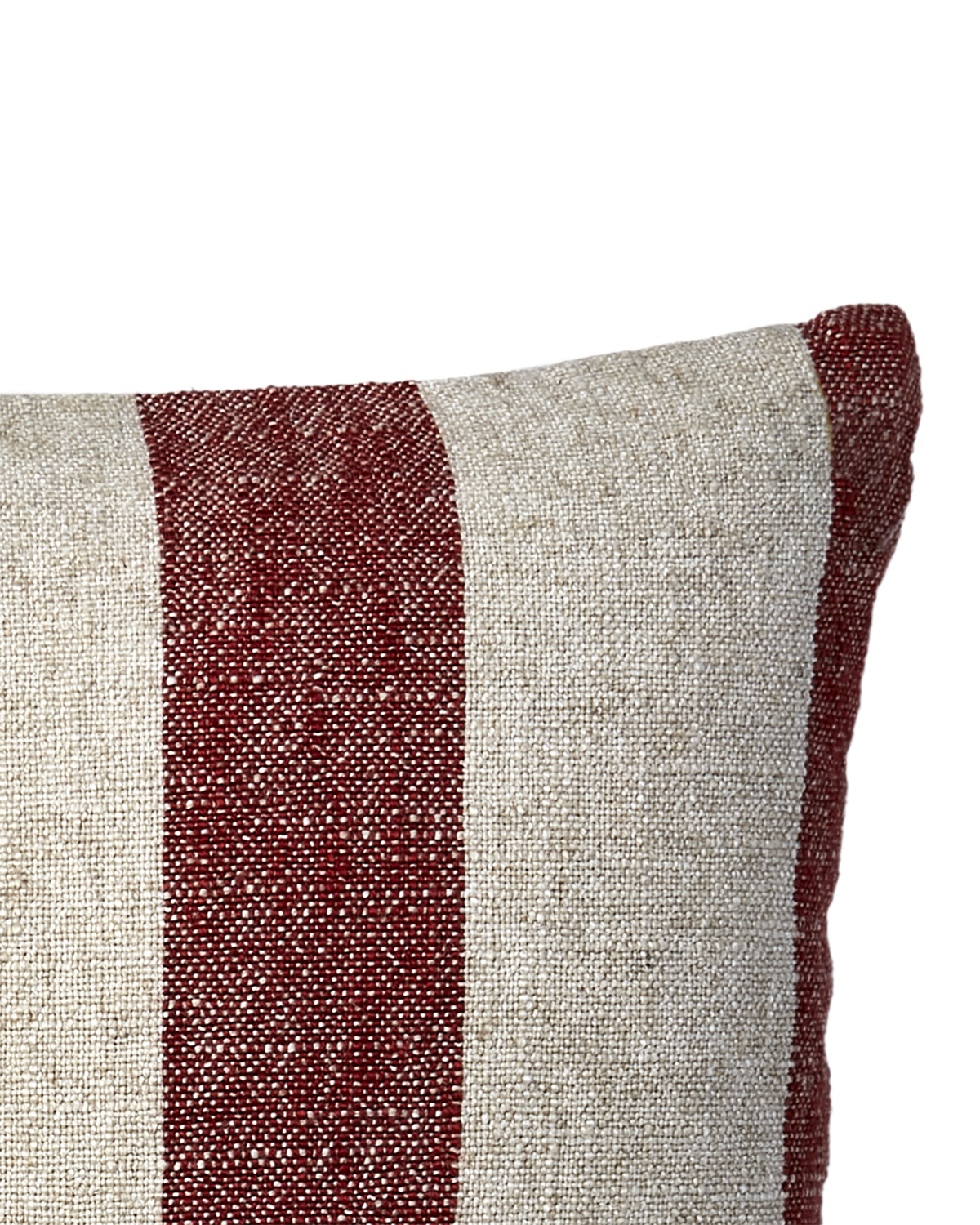 Ett kuddfodral med röda snygga ränder.