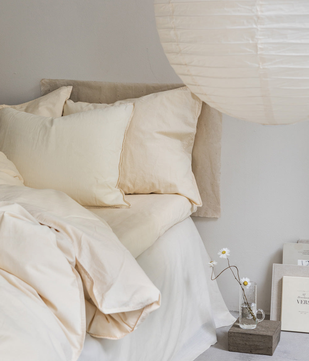 Lakanen är tillverkade i 100 procent ekologisk bomull och sydda i en stentvättad tuskaft som ger en mjuk och lite krispig känsla.