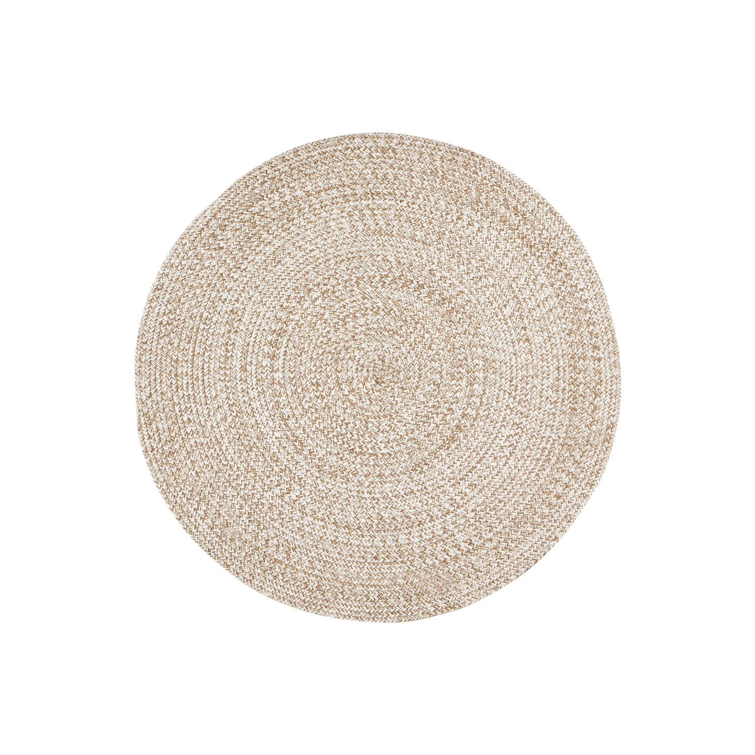 En snygg rund matta i jute och bomull.